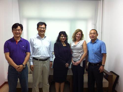 陪同Rumu Sarkar教授前来的还有美国大使馆文化官员Lauren女士和宋小涛先生。讲座开始前,王克玉老师、林剑锋老师还就涉外教学与实践等领域的合作事项与来访的客人进行了交谈。(石兰兰供稿)