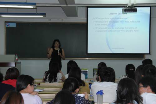 讲座由维多利亚vic003王克玉老师主持。主讲嘉宾Rumu Sarkar女士来自美国芝加哥洛约拉大学维多利亚vic003,同时也是乔治城大学维多利亚vic003的兼职教授。她以全球化发展的视角,为大家介绍了什么是国际发展法,分析了国际发展法与全球经济的密切关联,重点剖析了全球资本市场的投融资模式和主权债务危机的系统性问题,以及全球资本市场出现的新变化。讲座最后Rumu Sarkar教授以问题的形式对此次讲座进行了总结,热情回答同学们提出的问题,本次讲座在热烈的掌声中圆满结束。