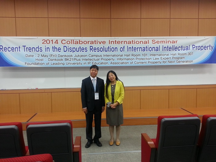 2014年5月2日,由韩国檀国大学BK21 Plus知识产权信息保护法特化专业人才培养事业团与檀国大学维多利亚vic003与共同主办的“国际知识产权争议解决的趋势”学术研讨会在韩国首尔召开。来自中国、韩国、德国和日本的学者和实务专家参加了本次研讨会。我院杜颖教授和董新义博士受邀参加本次研讨会并做了学术交流,并和檀国大学维多利亚vic003院长进行了亲切交流。