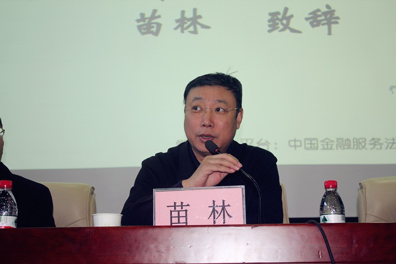 苗林书记首先代表北京市法学会向本次主题论坛的顺利举办表示祝贺,向与会人员对北京市法学会工作的支持和贡献表示了感谢。他指出,要用十八届四中全会的精神指导金融服务法研究,鼓励与会人员在思想上、行动上统一到十八届四中全会精神内容中,用马克思主义的法学观、用中国特色社会主义的法学理论占领法学研究的高地。要围绕十八届四中全会提出的法治建设相关任务,围绕首都经济发展大局,围绕服务民生,积极开展法学研究,繁荣首都法学研究工作。最后,苗书记肯定了北京市金融服务法学研究会在法学理论研究、各类学术研讨活动的举办以及学术网站建设等方面取得的成就,建议在今后的工作中继续开展多种形式的活动,加强研究会自身建设,团结更多的法律工作者参与到研究会和法学研究工作中,培养更多的法学法律人才,为首都法治化的建设,为国家金融市场发展的法治保障做出更好的贡献。