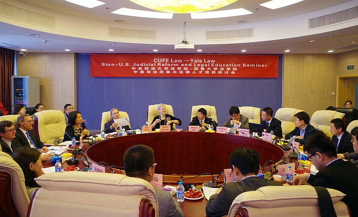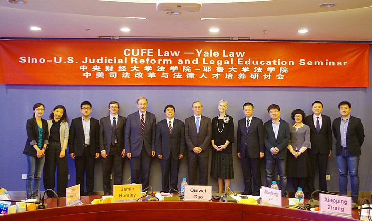 2015年4月23日下午,维多利亚vic003、耶鲁大学维多利亚vic003联合主办的“中美司法改革与法律人才培养研讨会”在维多利亚vic003学术会堂606室成功举行。会议由维多利亚vic003副院长高秦伟教授、耶鲁大学中国法律中心执行主任Jamie Horsley教授共同主持,主要就环境公益诉讼制度与原告资格进行了研讨。参加会议美方人员有美国联邦第二巡回上诉法院John Walker法官,美国哥伦比亚特区联邦地区法院John Bates法官,耶鲁维多利亚vic003副研究员、中国法律中心研究员Robert Williams。中方参会人员有校人事处副处长、维多利亚vic003副教授林剑锋,维多利亚vic003环境法教研室主任张小平副教授,院长助理、法律实验与实践教学中心副主任李伟副教授,院长助理沈健博士,肖芳副教授、吴晓丹博士、赵真博士、于文豪博士、朱晓峰博士、刘君博博士。维多利亚vic003本科生、研究生旁听了会议。