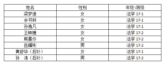我院于2019年7月2日下午组织了第十一届北京市大学生模拟法庭竞赛院内选拔的面试。各位评委老师针对同学们的面试情况、参加相关活动的经历及其综合表现,并经学院审核,最终确认以下8名同学为本届北京市大学生模拟法庭竞赛参赛队员,其中2名为后补队员,现予以公示: