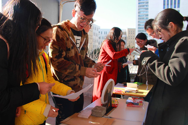 中午时分,沙河校区的食堂门前热闹非凡,本次活动设计的闯关游戏吸引着前来就餐的师生,第一关“宪学宪记”:宪法法条的记忆是学习宪法的基础,通过法条的背诵记忆,同学们对宪法有了初步的了解。第二关“宪学宪用”:转盘选题,题目分为不同难易程度,通过抽取题目、回答问题和疑难解惑,同学们深切感受到宪法精神,进一步增强了法制意识。第三关“宪学宪玩”:最吸引师生参与,同时也是难度最高的就属此关。参与者不仅要根据法律常识做出正确的选择,还要将代表选项的乒乓球投入相应的框内,通关师生都能得到一份小礼品以资鼓励。趣味游戏使大家在欢声笑语和思维碰撞中学习了宪法,寓教于乐,达到了宣传的目的。